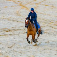 Evelien was na een bezoek aan haar paard via de andere kant naar de Kale Duinen gekomen en hield de dames op de hoogte van mijn zoektocht. Uiteindelijk kwamen wij elkaar tegen en kon ik van de nog aanwezige ruiters foto’s maken. Evelien had al een paar filmpjes gemaakt. Toen ik mijn plek had uitgekozen, waren ze klaar om een paar keer voor mij langs te rennen.