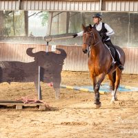 Natuurlijk stond er ook een Working Equitation les gepland op de dag. Diverse deelnemers waren gekomen voor de WE-stijltrail, speedtrail en dressuur. Het niveau was keurig verdeeld over de diverse klasse. Waar nodig liep Ton van zijn jurystoel in de binnenbak om hulp te bieden. Dit in zijn eigen rustige stijl en kalmte, zodat het vertrouwen werd overgedragen aan paard en ruiter om het hierna zelf te doen. Met succes.